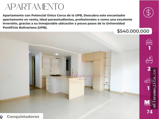 Descubra este encantador apartamento en venta, ideal para estudiantes, profesionales o como una excelente inversión, gracias a su inmejorable ubicación a pocos pasos de la Universidad Pontificia Bolivariana (UPB).