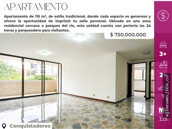 Apartamento estilo tradicional en venta en Conquistadores, piso medio
