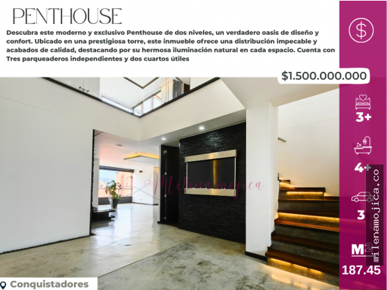 Descubra este moderno y exclusivo Penthouse de dos niveles, un verdadero oasis de diseño y confort. Ubicado en una prestigiosa torre, este inmueble ofrece una distribución impecable y acabados con calidad, destacando por su hermosa iluminación natural en cada espacio.